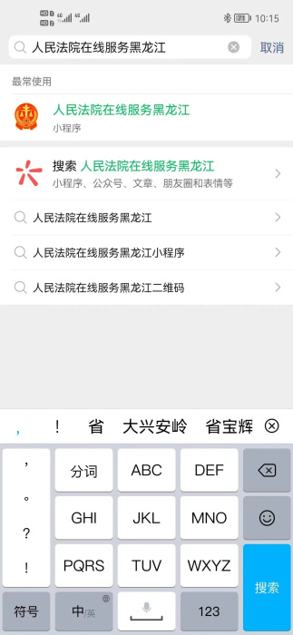 1、在微信公众号搜索“人民法院在线服务黑龙江”