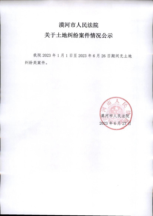 我院2023年1月1日至2023年6月26日期间无土地纠纷类案件。