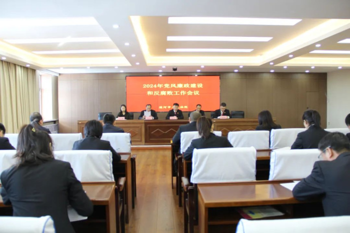 漠河市人民法院召开2024年党风廉政建设和反腐败工作会议,全面总结2023年漠河市人法院党风廉政建设和反腐败工作,部署2024年重点工作。市纪委监委派驻纪检组吕峰同志出席会议,会议由党组成员、副院长孙长东主持,全体在院干警参会。