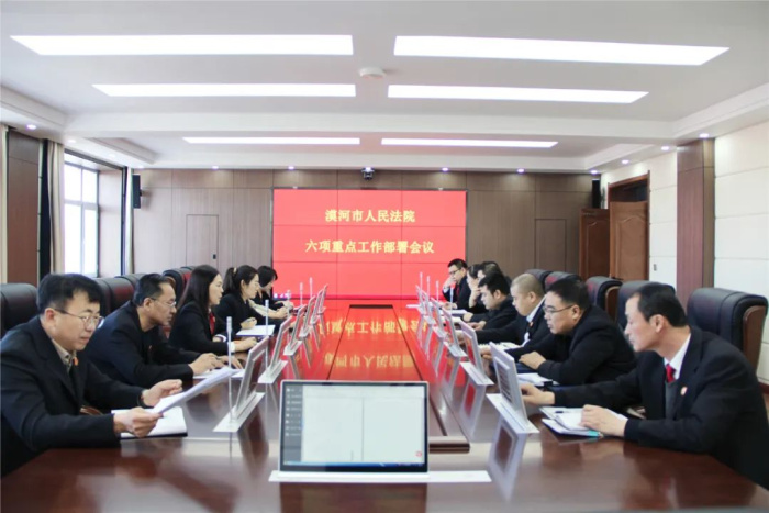 漠河市人民法院召开六项重点工作部署会议。会议由党组成员、副院长刘长宏主持,党组成员及各部门负责人参加会议。
