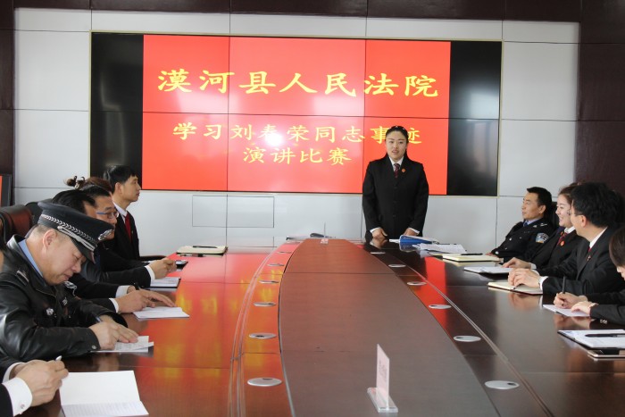 3月18日上午,漠河县人民法院干警利用周末休息时间,在五楼会议室举行学习刘春荣事迹主题演讲比赛。院领导及部分庭室负责人担任评委。