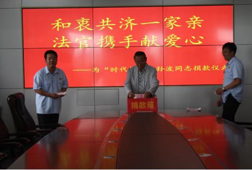 捐款并不是最重要的,最重要的是能让孙波同志知道身边有这么多的人在关心着他,帮助他能在困境中迎难而上,激发出战胜疾病的信心和力量,让他在法院这个和谐的大家庭中,与全体法官们一起体验感动和力量,一起传递希望和坚强。