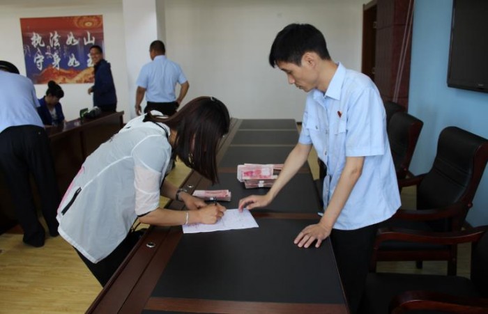 新闻通报会结束后,漠河法院当场为6起执行案件7名当事人发放执行款22.7万元,在执行案款发放现场,秩序井然,几名申请执行人拿到执行案款后,激动之情溢于言表,对于执行干警不畏辛苦严格执行并及时发放案款表示感谢。