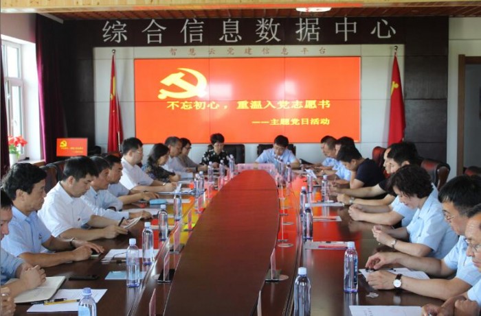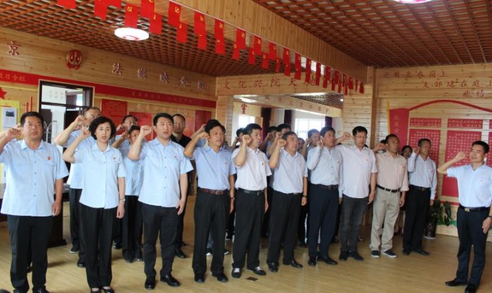 在漠河市人民法院党员活动室开展主题党日当天,最高院行装局一行与漠河法院党员重温了入党誓词。最高院行装局党员代表和漠河市人民法院党员代表还一同重温了入党志愿书。