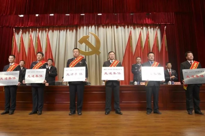 3月5日,在全区政法工作会议上,漠河市人民法院荣获2017—2018年度“全区政法系统先进集体”荣誉称号,党组书记、院长刘军代表漠河市人民法院上台领奖。