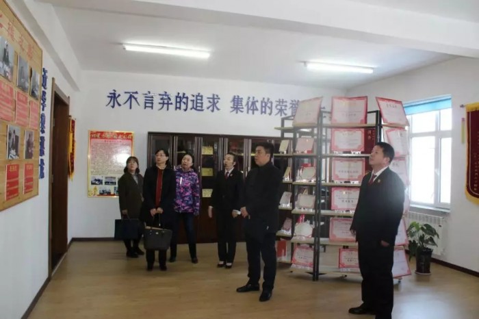 在党员活动室,刘军向工作组介绍了漠河市人民法院开展北极连北京“北北相联党建”的活动和书香法院、松香广场、墨香裁判、石香展厅的法院党建+“四香”为载体的法院党建文化建设,得到了地委组织部一行的认可。
