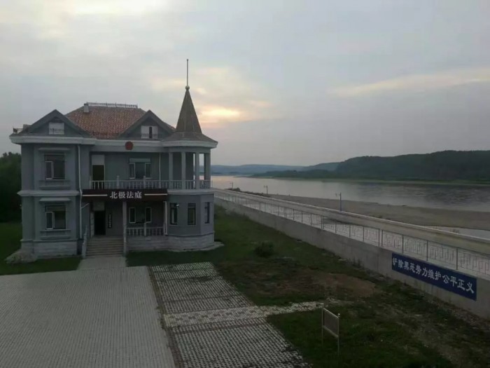 漠河市人民法院北极人民法庭,毗邻黑龙江,与江对岸的俄罗斯隔江相望。北极人民法庭现有审判、办公综合楼两座,面积1000余平方米,审判庭面积200余平方米,可同时容纳50余人参与旁听。法庭于2016年8月正式挂牌成立,2017年3月21日上午9时,漠河市人民法院刘军院长在北极法庭敲响了“最北审判第一槌”。