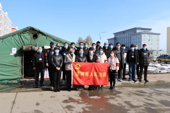 近日漠河市人民法院组织党员、入党积极分子及一线防控干警,开展“不忘初心铸红色堡垒、抗击疫情记使命担当”主题党日活动。漠河市人民法院党组书记、院长刘军,全体在家党员代表、入党积极分子及全体一线防控干警参加了此次主题党日活动。