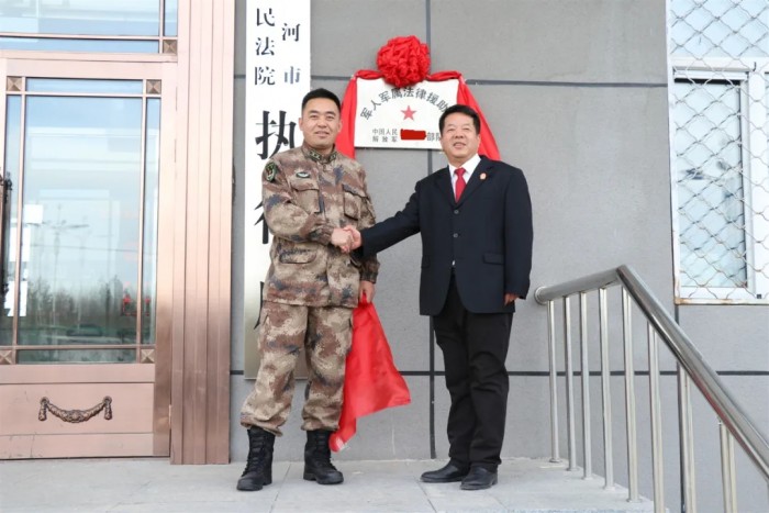 为深入贯彻落实国务院、中央军委《关于进一步加强军人军属法律援助工作的意见》,维护部队和军人军属的合法权益,妥善处理军人、军属涉法涉诉矛盾纠纷问题。近日,漠河市人民法院正式挂牌设立“军人军属法律援助工作站”。北部战区陆军某部队政法委副书记卢平,漠河市人民法院党组书记、院长刘军共同为工作站举行了揭牌仪式。