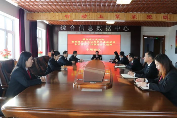 11月9日,漠河市人民法院召开专题落实会,会议对中央、省委和地委关于党风廉政建设和反腐败工作部署以及全省、全区法院2020年党风廉政建设和反腐败工作推进会精神进行了进一步的传达落实。漠河市人民法院党组书记、院长刘军主持会议,各庭室(局)负责人参加会议。