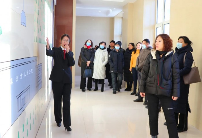 在讲解员的引导下,代表们先后参观了漠河市人民法院一站式诉讼服务中心、12368远程视频接访室、高科技法庭、荣誉室、党员活动室等场所,观摩体验了自助立案、网上立案、跨域立案,亲身感受了电子诉讼、移动微法院、云解纷平台等现代化科技为诉讼服务带来的便利,全方位了解了法院一站式多元解纷、一站式诉讼服务建设情况。