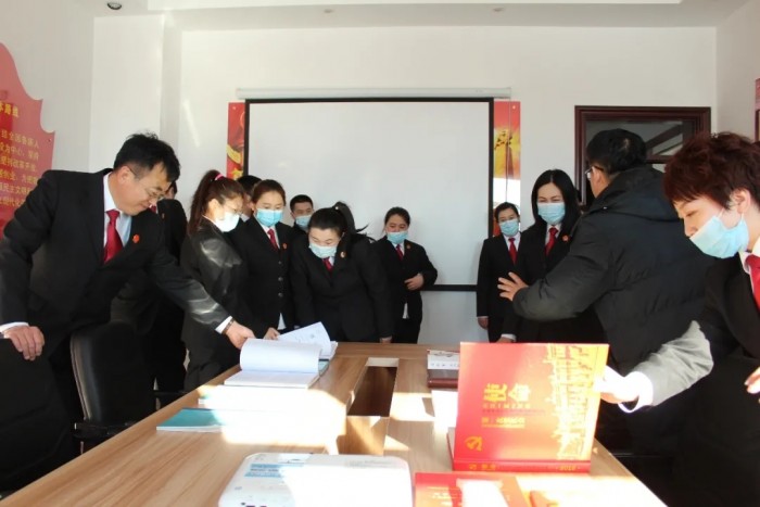 在党建室,法院干警们仔细翻看漠河市“不忘初心,牢记使命”主题教育台账、中国铁路哈尔滨局集团有限公司《使命》图册、获得的荣誉等等党建资料,对漠河站的工作和在党建方面的突出成绩有了深入的了解,并被漠河站浓厚的党建氛围所吸引。
