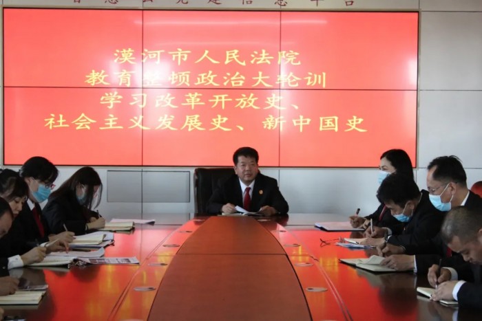 为深入贯彻落实政法队伍教育整顿学习教育环节工作要求,全面加强法院队伍思想政治建设和理想信念教育,提高法院队伍政治素养和理论素养,3月18日下午,漠河市人民法院组织开展队伍教育整顿学习教育环节政治大轮训第二次集中学习,党组书记、院长刘军主持会议并带头领学,全院干警参加集中学习。