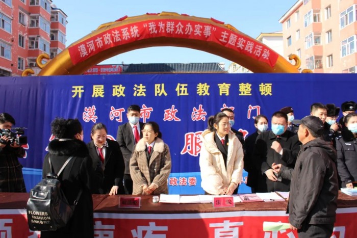 3月23日上午,由漠河市委政法委组织,漠河市人民法院与公安局、检察院、司法局等10家单位共同开展政法队伍教育整顿“我为群众办实事”主题实践活动。