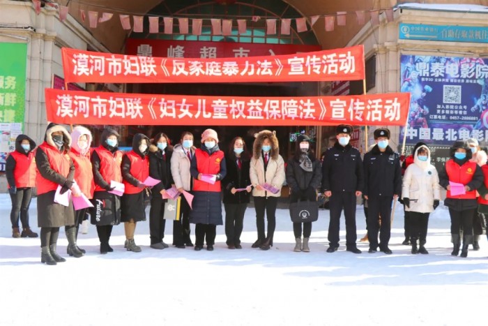 3月1日上午,漠河市人民法院携手市妇联、公安局、检察院、司法局等部门,以“创建法治漠河·巾帼在行动”为活动主题,组织青年志愿者30余人,共同前往鼎峰商场,开展“三八”维权周普法宣传活动。