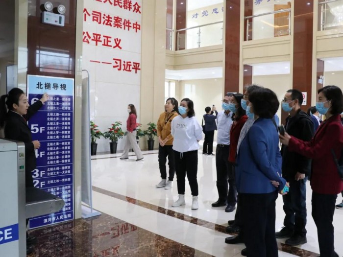 在讲解员的引导下,评估组一行及相关工作人员共30余人,先后参观了漠河市人民法院廉政长廊、诉讼服务中心、科技法庭、院史馆、党员活动室等场馆。直观的了解了漠河市人民法院从立案、审判到执行工作的全部流程和漠河市人民法院在审判执行、党建、队伍建设、文化建设等诸多方面取得优秀成绩。