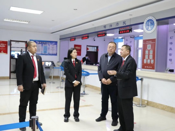 近日,大兴安岭地区中级人民法院党组成员、专审委张立伟深入漠河市人民法院,就法院诉讼服务中心窗口建设及信息化工作开展实地督导调研。漠河市人民法院党组书记、代院长王大伟及相关工作人员陪同检查。
