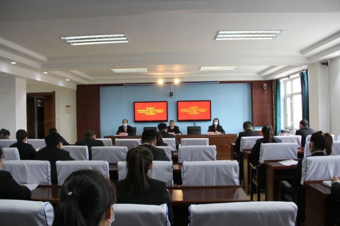 坚定理想信念,筑牢思想根基。漠河市人民法院召开“深刻领悟‘两个确立’决定性意义 坚决做到‘两个维护’”主题教育动员部署会,进一步统一思想、深化认识、锻造忠诚干净担当的法院铁军,以实际行动迎接党的二十大胜利召开。院党组书记、院长王大伟主持会议并讲话,全院干警参加会议。