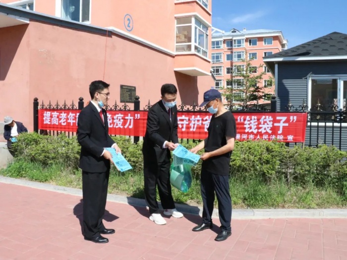 为深入贯彻落实打击整治养老诈骗专项行动要求,维护老年人的合法权益,增强老年人防骗识骗意识。近日,漠河市人民法院刑事审判庭干警深入社区开展以“提高老年防骗‘免疫力’ 用心守护爸妈‘钱袋子’”为主题的集中普法宣传活动。