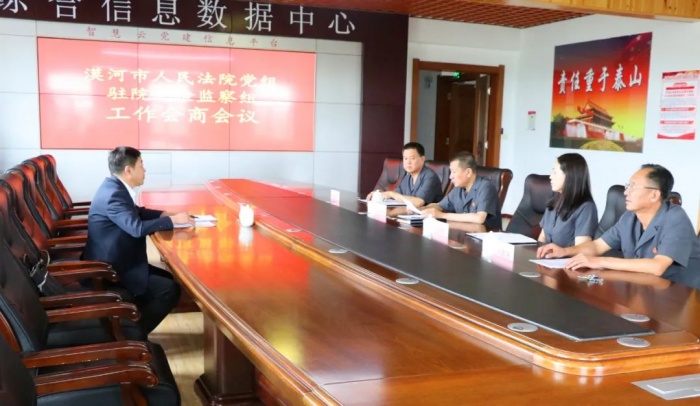 漠河市人民法院与市纪委监委派驻纪检监察组就2022年上半年党风廉政建设开展会商工作,并对漠河市人民法院下半年全面从严治党工作作出部署安排。院党组书记、院长王大伟主持会议,派驻纪检监察组组长王佰朝及法院班子成员参加会议。