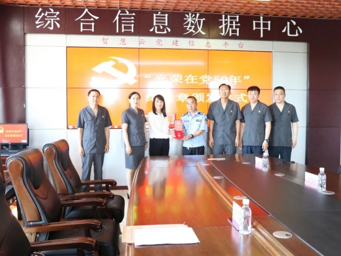 漠河市直属机关工委副书记杭海英带队,为漠河市人民法院在党50年以上的老党员颁发“光荣在党50年”纪念章,进一步弘扬伟大革命精神,表达对老党员的敬意,并号召广大党员干部学习前辈们的奋斗精神和光荣传统。漠河市人民法院党总支书记赵国伟及相关人员参加颁发仪式。