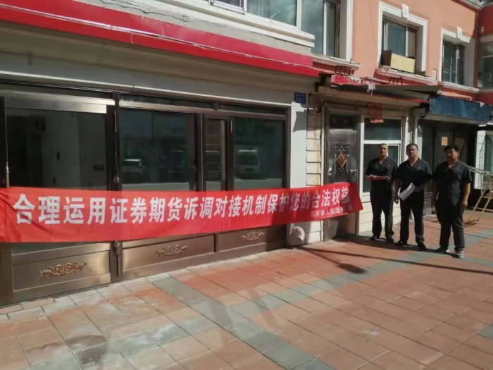 为进一步妥善保护中小投资者合法权益,充分发挥司法在纠纷化解中的引领、推动、保障作用,不断满足证券期货纠纷多元化解、快速化解和有效化解的实际需求,营造资本市场健康良好法治环境。8月18日,漠河市人民法院立案庭干警深入漠河市商圈、小区开展证券期货诉调对接机制宣传活动。