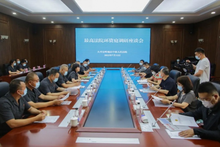 在大兴安岭中院的调研座谈会上,调研组听取了中院党组书记、院长于世伟的工作汇报,观看了环资审判工作专题片《以法治的力量守护绿水青山》,详细了解了大兴安岭地区转型发展情况,与参会法官进行充分交流,解答环资审判中遇到的难题和疑惑。