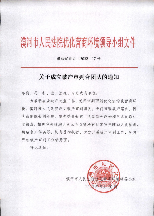 【优化营商环境】漠河市人民法院成立破产审判团队