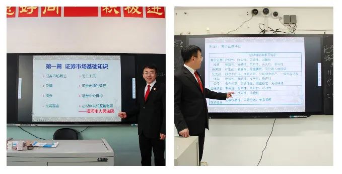 课上,刘长宏以身边常见的经济知识为切入点,从宏观的角度详细解读了证券期货的相关知识,并从法官专业角度,列举了“校园贷”“套路贷”等社会热点问题典型案例,揭示了市场风险,为在校师生上了一堂生动风趣、意味深长的教育讲座,进一步帮助师生提高金融风险防范意识,树立科学理性的消费观念。